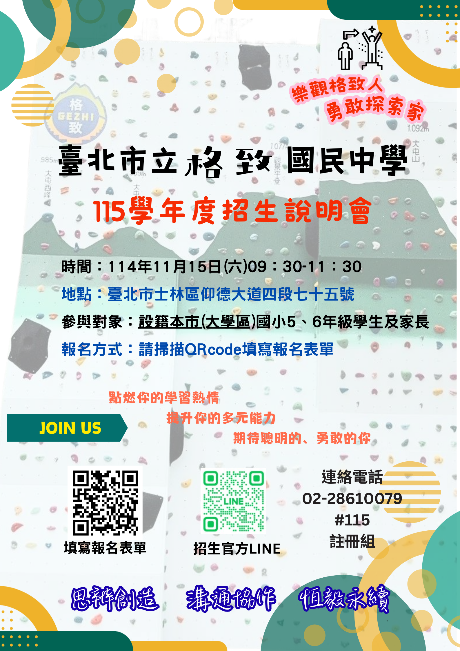 招生說明會資訊請參閱附加檔案「115學年度招生海報」。