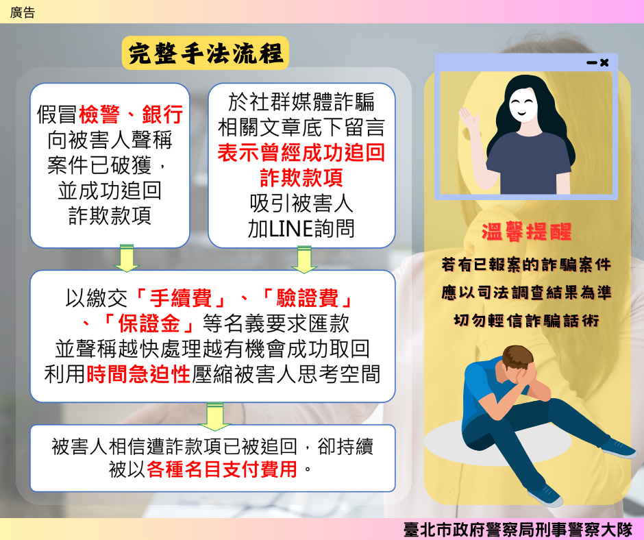 詐騙案件層出不窮,為保障市民的財產安全,臺北市政府警察局特別提醒大家,要警惕詐騙行為。