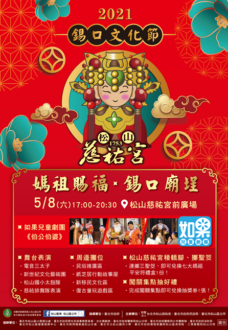 臺北市松山區「2021錫口文化節媽祖賜福.錫口廟埕」即將登場!