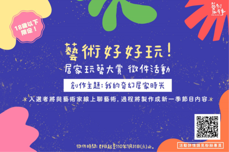 歡迎同學報名公視節目《藝術很有事》舉辦之『藝術好好玩!居家玩藝大賞』徵件活動。