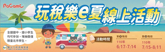 說明:為提高國中、國小學生對租稅學習的興趣,臺北市稅捐稽徵處透過 PaGamO線上學習平臺舉辦「玩稅樂e夏線上活動」,請踴躍參與。