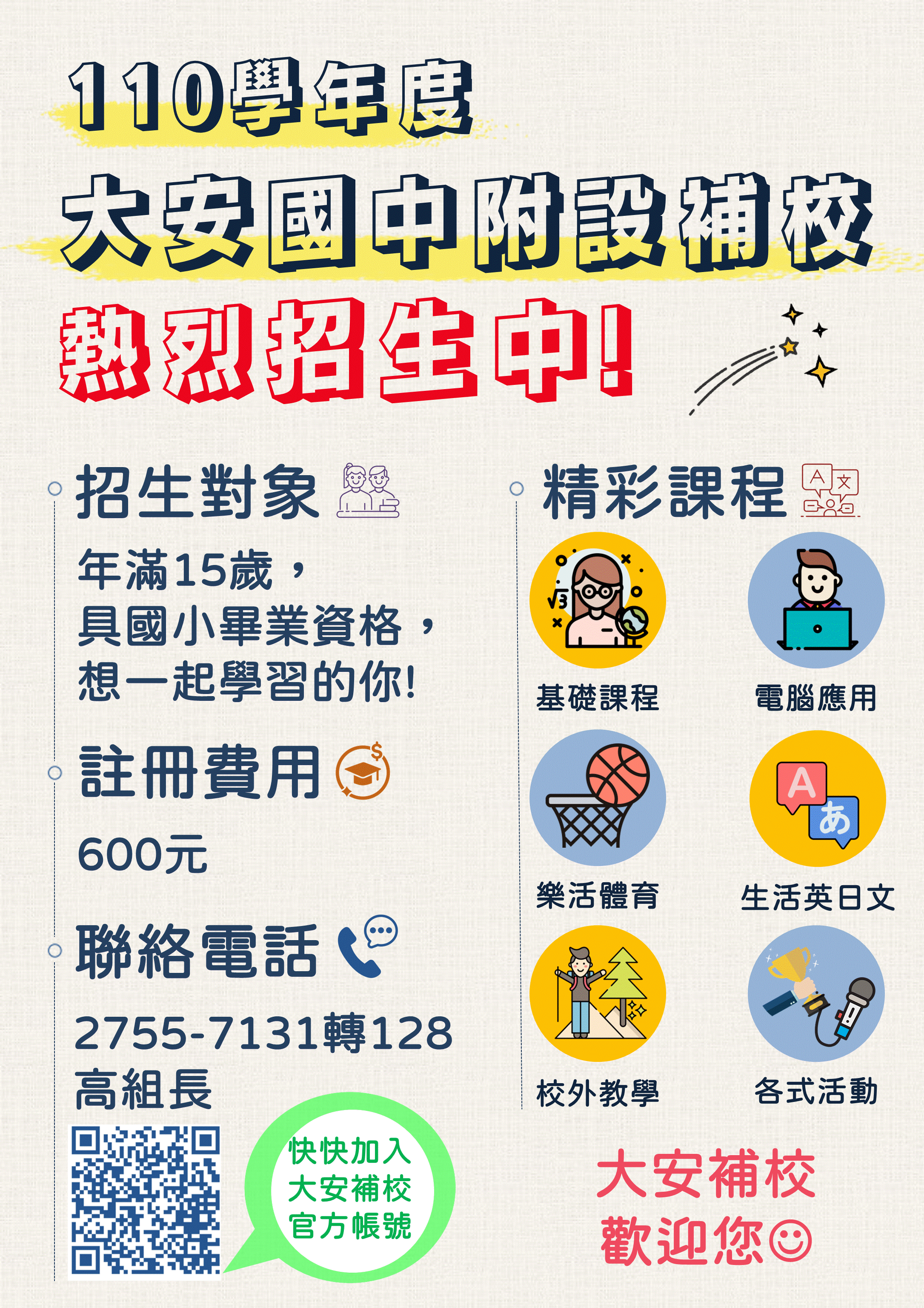 臺北市立大安國中補校,熱情歡迎您的加入!