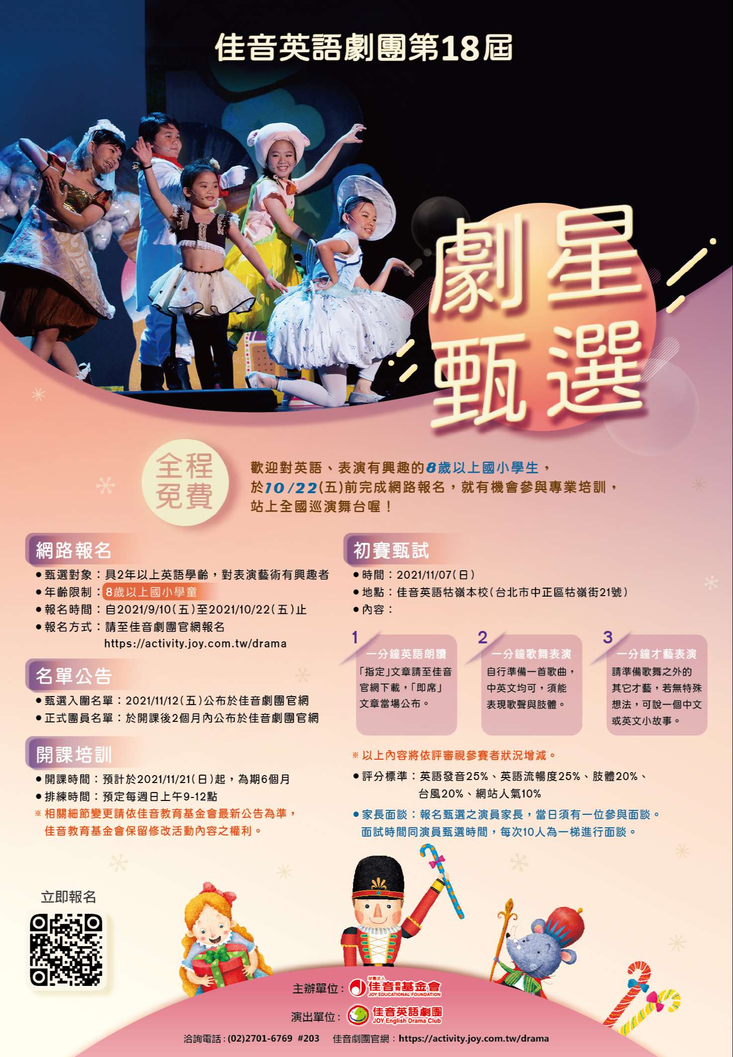 (二)報名方式: 採網路報名,逕至「佳音英語劇團官網」網址: https://activity.joy.com.tw/drama