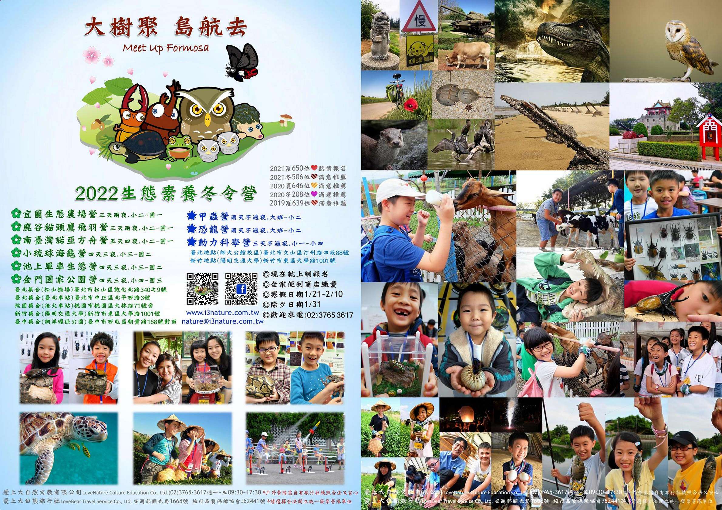一、「愛上大自然文教有限公司」將於111年1月21日~2月10 日,舉辦「2022生態素養冬令營」。