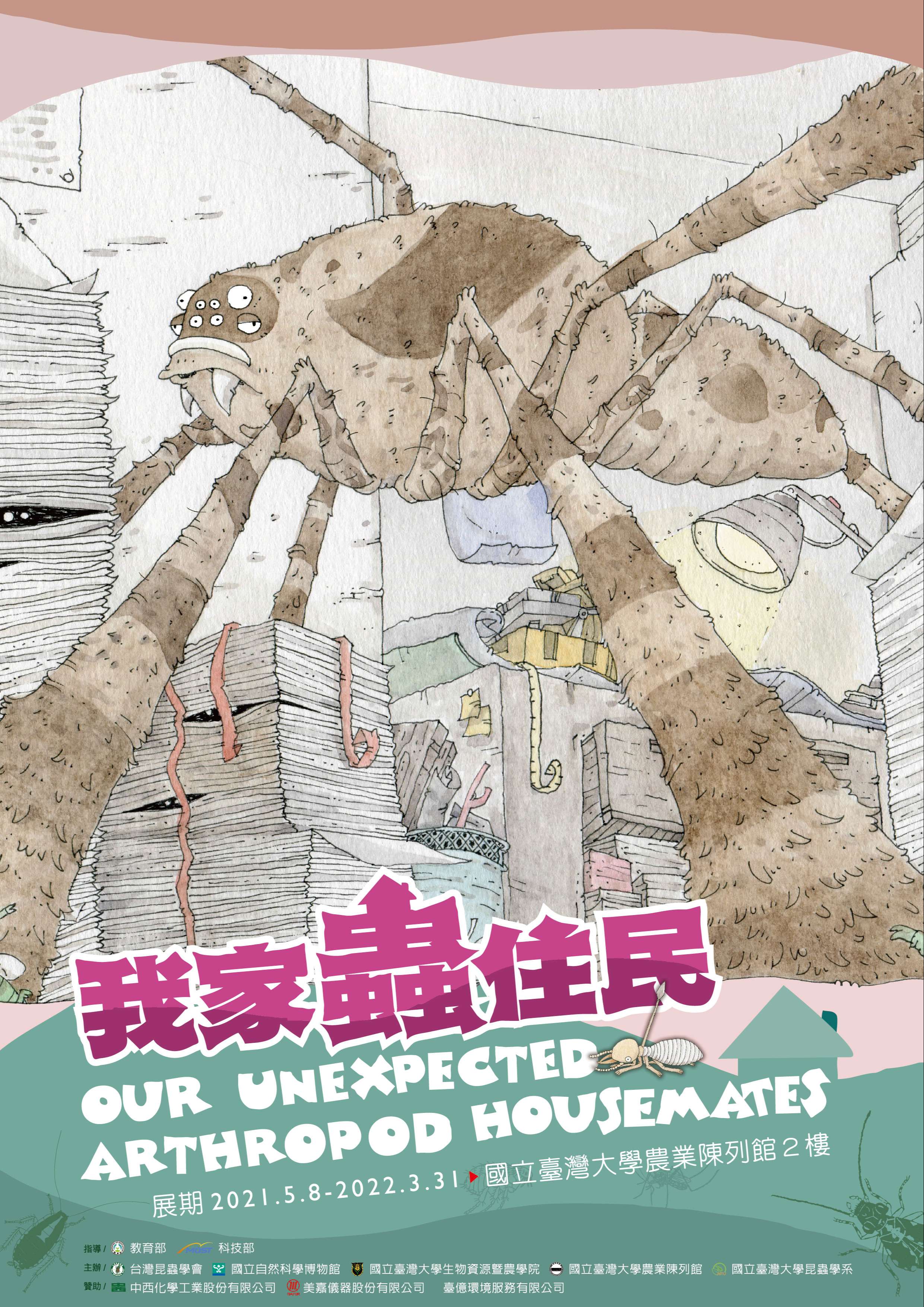 (二)展覽主題:展場分為「我們的家」、「害蟲?益蟲」、 「歡迎光臨」、「蟲與牠們的棲地」、「誰躲在我家?」、「特異功能」、「小小蟲子我怕怕」、「請你麥擱來」、「如果家裡沒有蟲」九大主題,搭配實體家具與不同空間格局呈現家的感覺,讓民眾在輕鬆情境中,實地了解家中節肢動物種類及棲息環境。