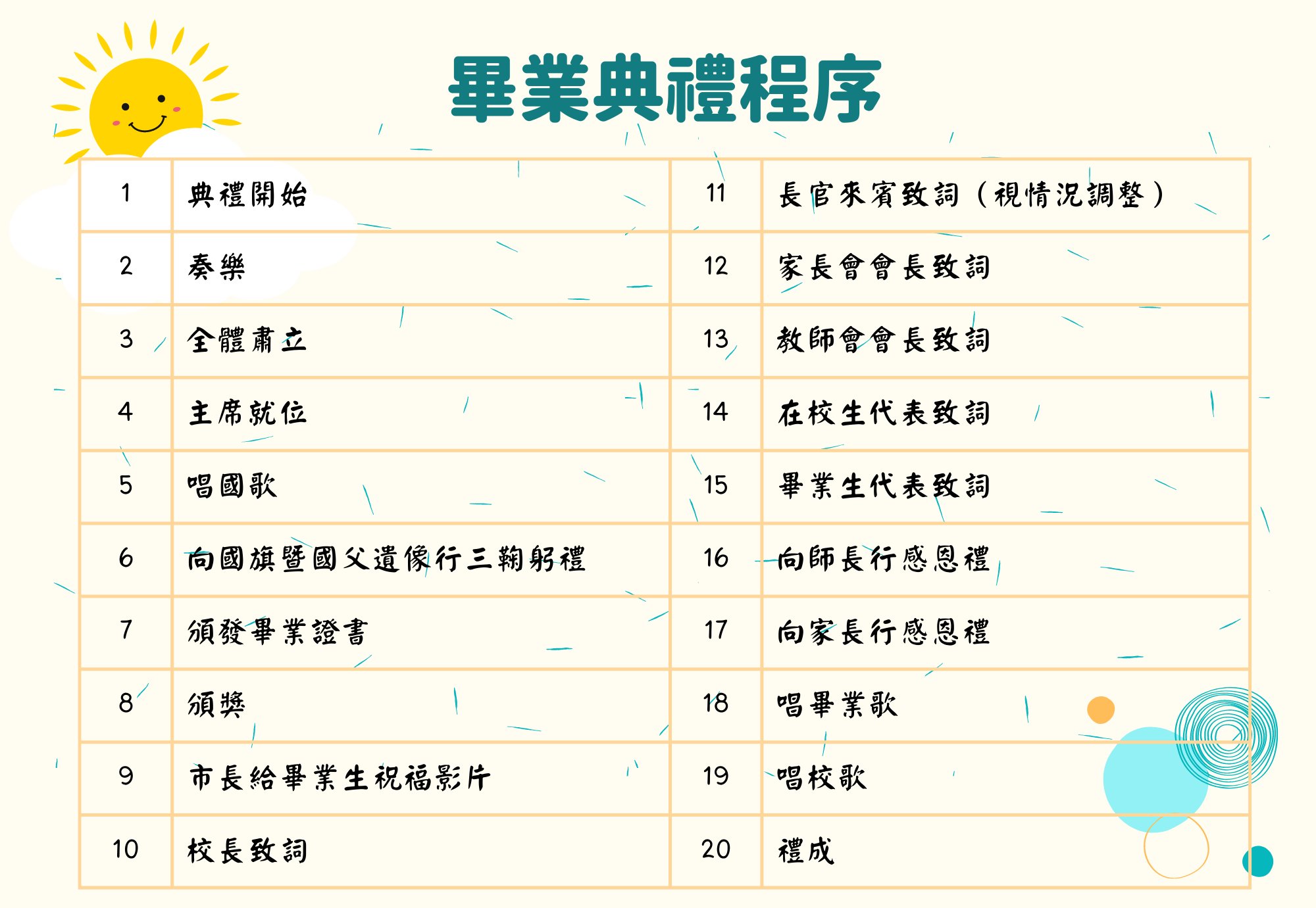 今年因為疫情的關係,本校畢業典禮採混成模式辦理:畢業班師生(實體畢典)、家長與來賓(線上直播+錄影)。相關說明如下: