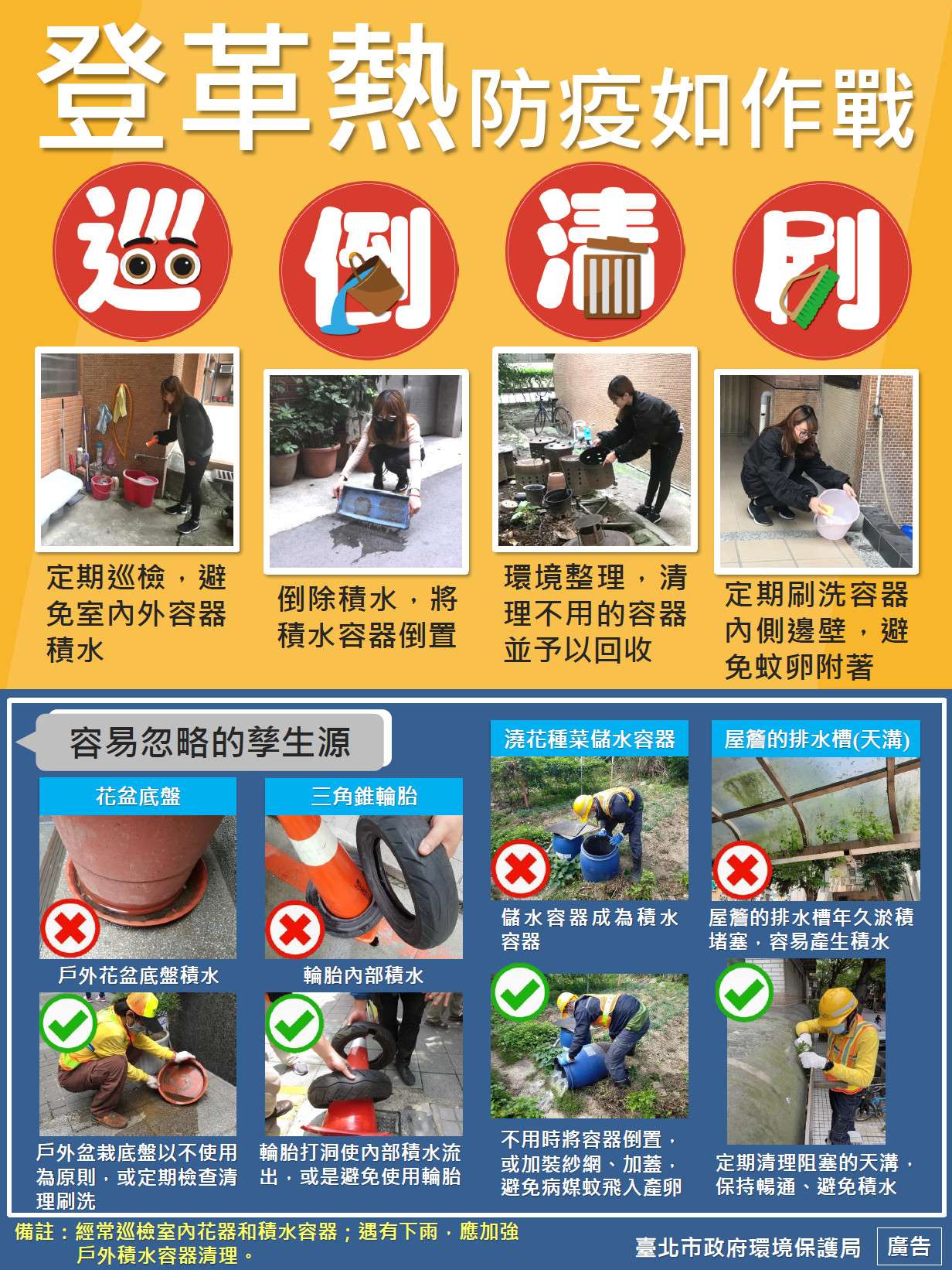 為防治登革熱,請協助清除登革熱病媒孳生源「巡倒清刷」工作,如附件。
