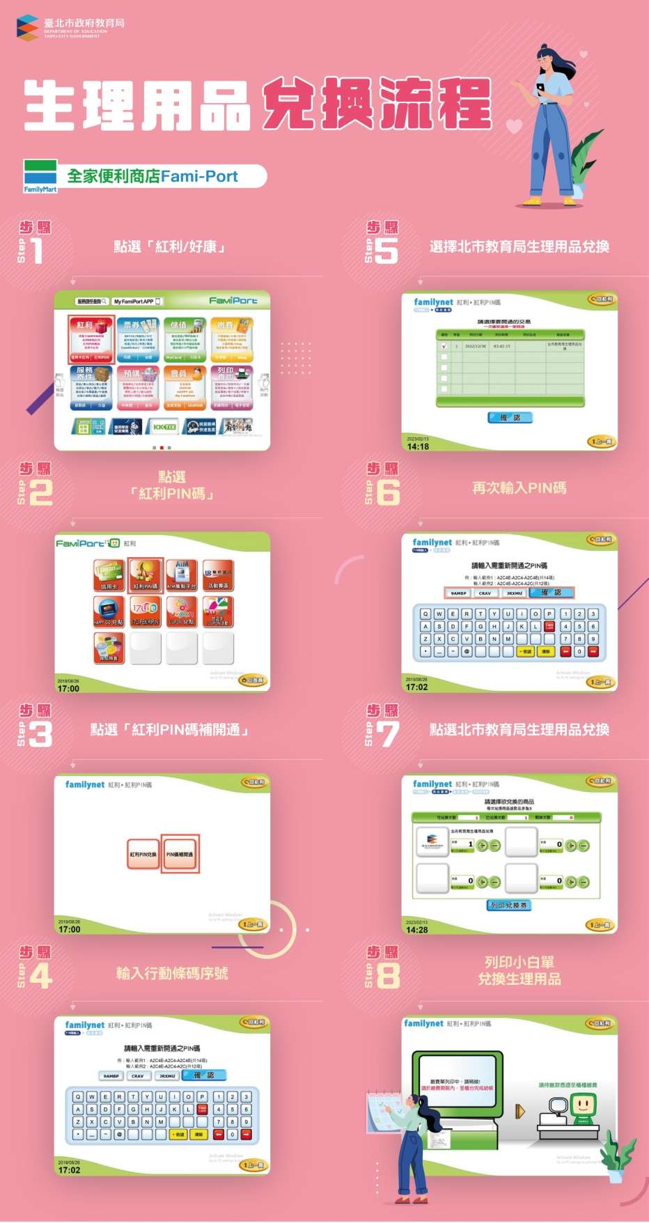 4、兌換品項:各家超商均提供10種以上可兌換之生理用 品,請詳閱兌換券上說明文字,非指定商品不提供兌 換。