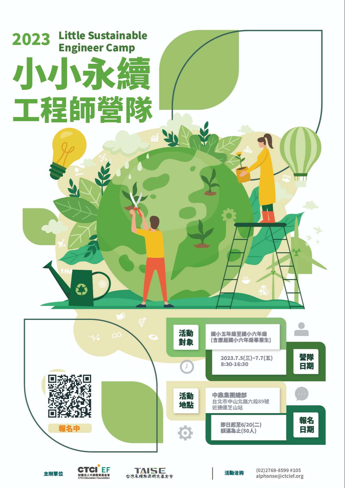 一、聯合國永續發展目標(SDGs)已是全球政府、教育、企業領域的共通語言,永續發展教育(ESD)與永續發展目標之整合運用係全球最新趨勢。本會主辦「2023小小永續工程師營隊」期能提升國小學童在環境永續、工程領域相關的專業知能,培養其創造力與自主學習力。
