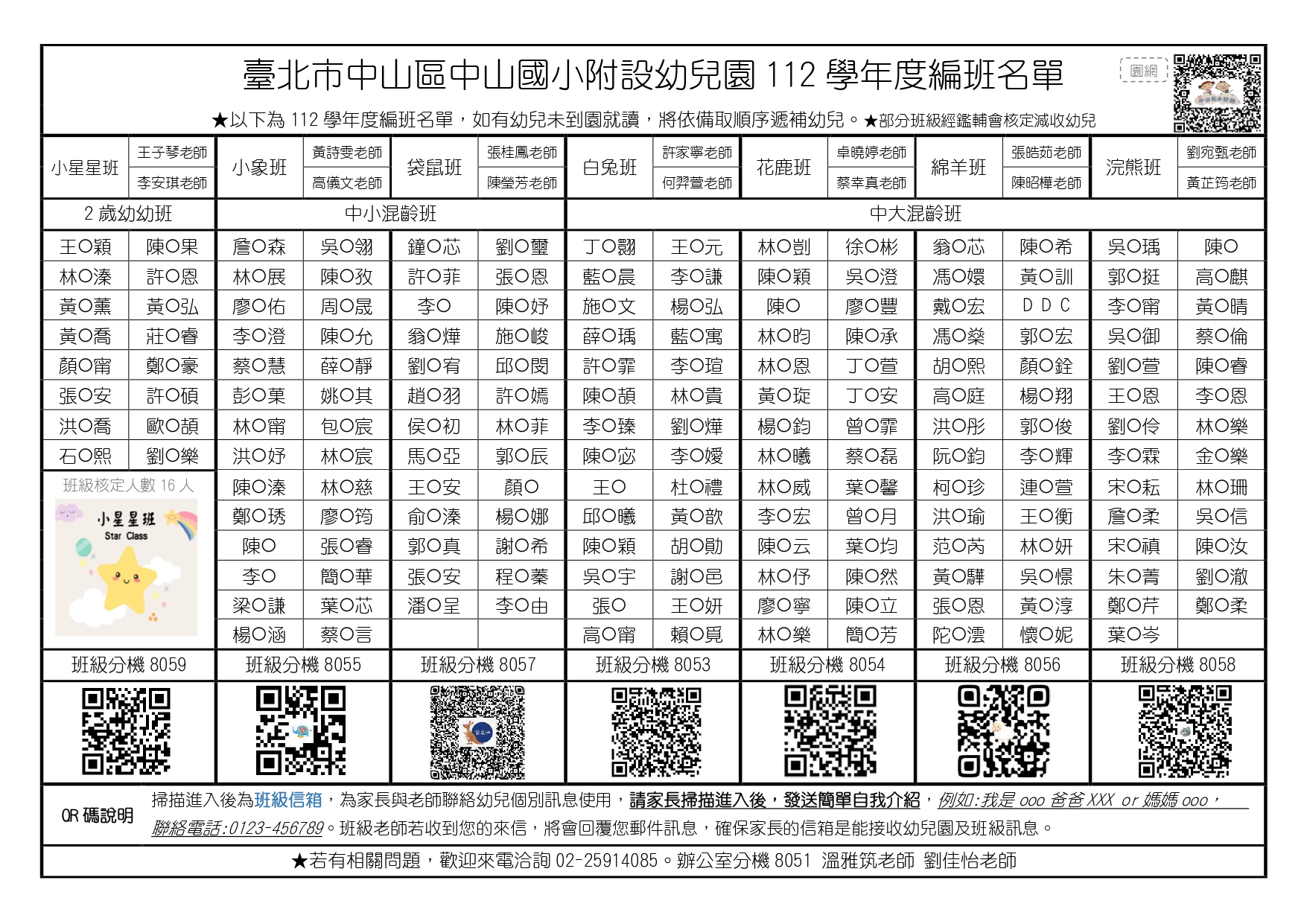★112學年度中山附幼編班名單★