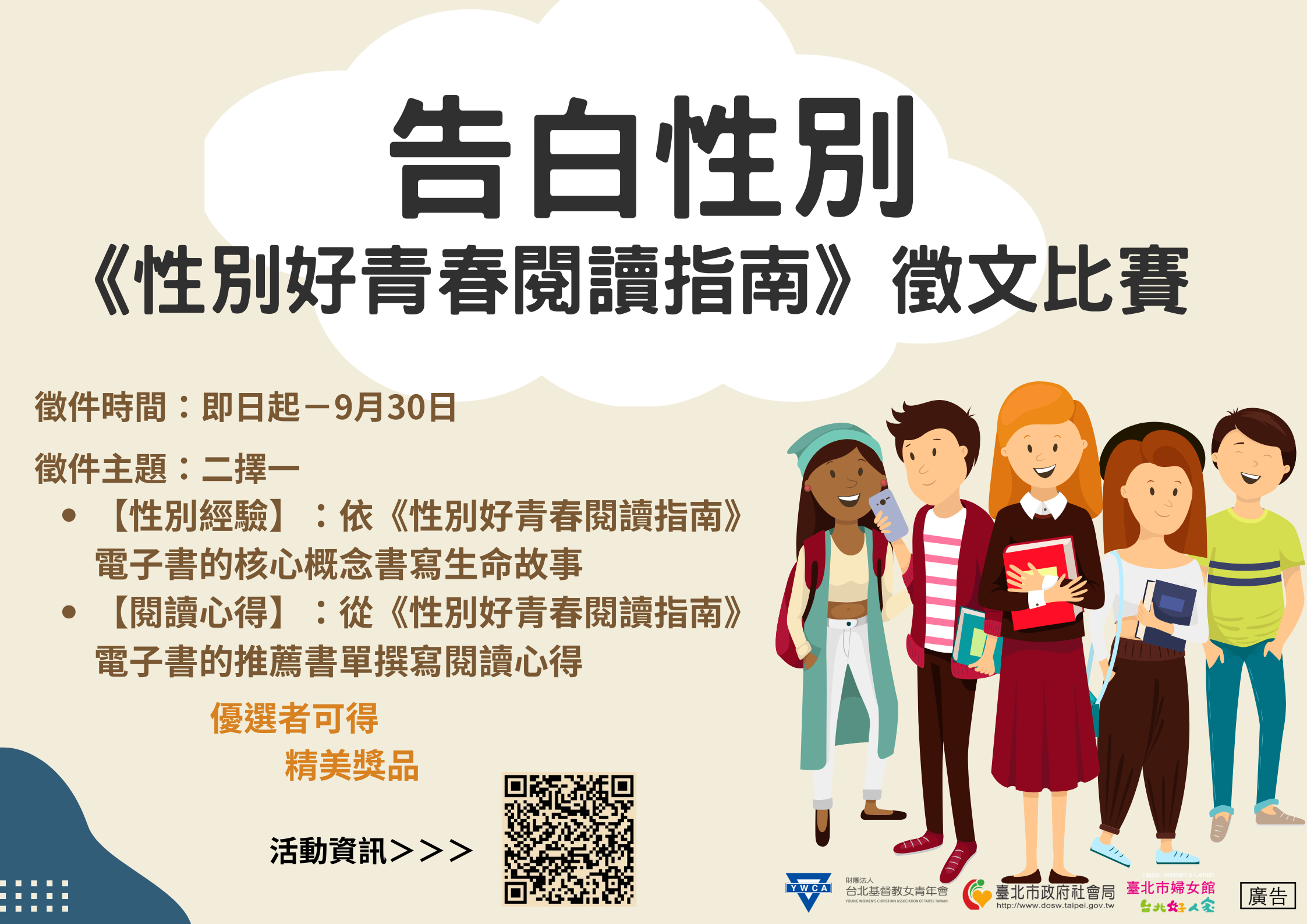 二、臺北市政府社會局委託台北基督教女青年會經營管理臺北 市婦女館,本計畫的目的係根據臺北市婦女館111年制訂的性列平等教材《性別好青春閱讀指南》辦理徵文比賽,邀請青少年、大專院校學生以及一般大眾,述說性別經驗或閱讀心得。