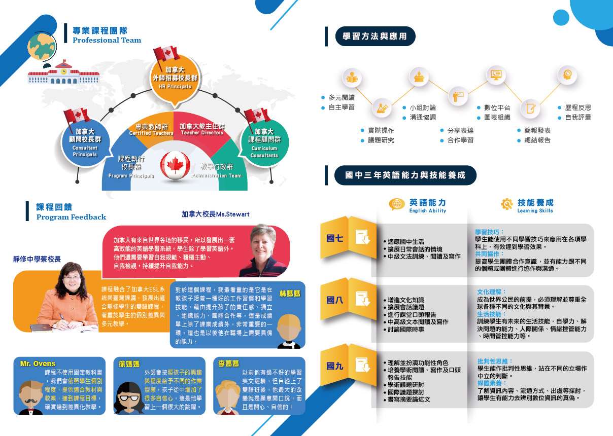 一、為使貴校家長與學生充分了解本校國中部加拿大ESL雙語課 程與全人菁英課程之入學資訊,舉辦招生說明會暨六年級 學生體驗課程,如下所示: (一) 說明會:第一場:112年12月09日(六)上午9:20-11:20 第二場:113年01月27日(六)上午9:20-11:20第三場: 113年03月10日(日)上午9:20-11:20 (二) 六年級加拿大ESL雙語課程體驗(限80人,額滿為止)課 程體驗時間:112年12月09日(六)上午9:20-11:20 (三) 學力競試:113年03月10日(日)上午9:00-12:00