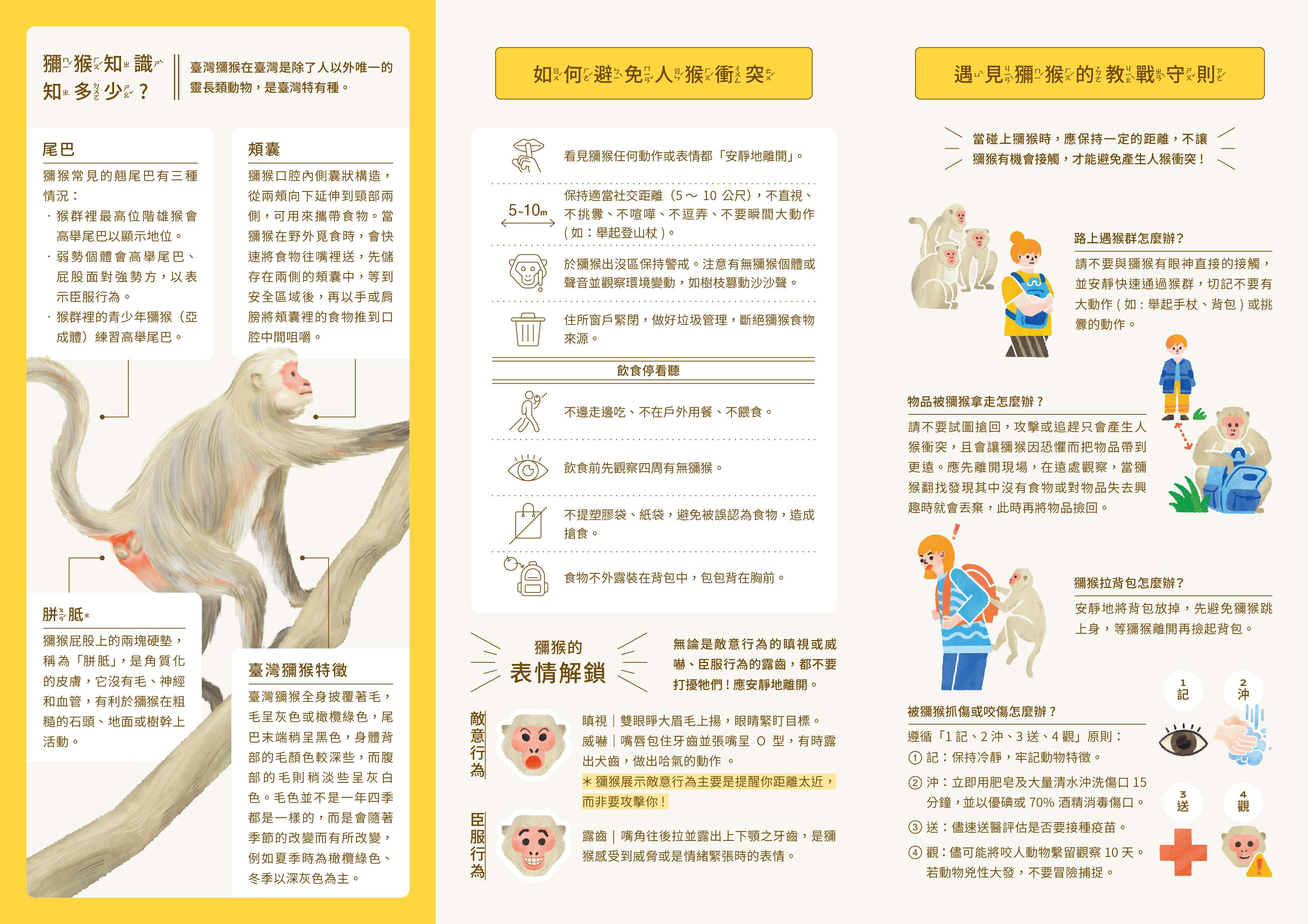 財團法人農業科技研究院規劃「與猴共處」摺頁電子檔,歡迎民眾或校園師生取用。
