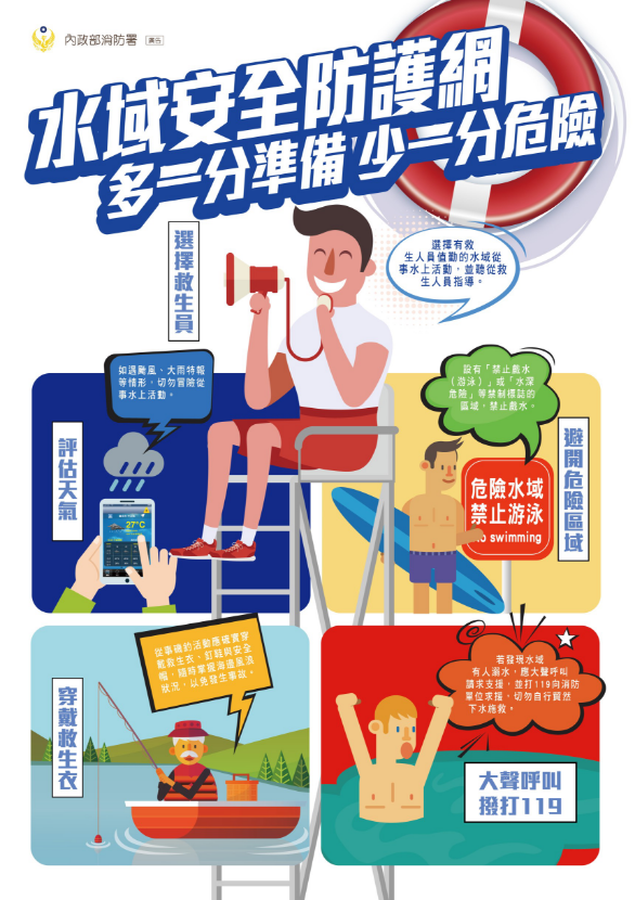 考量現值夏季炎熱時節,民眾常至溪邊海邊等水域地區戲水玩樂,消除暑氣。請民眾做好防溺措施,避免溺水造成生命的損害。