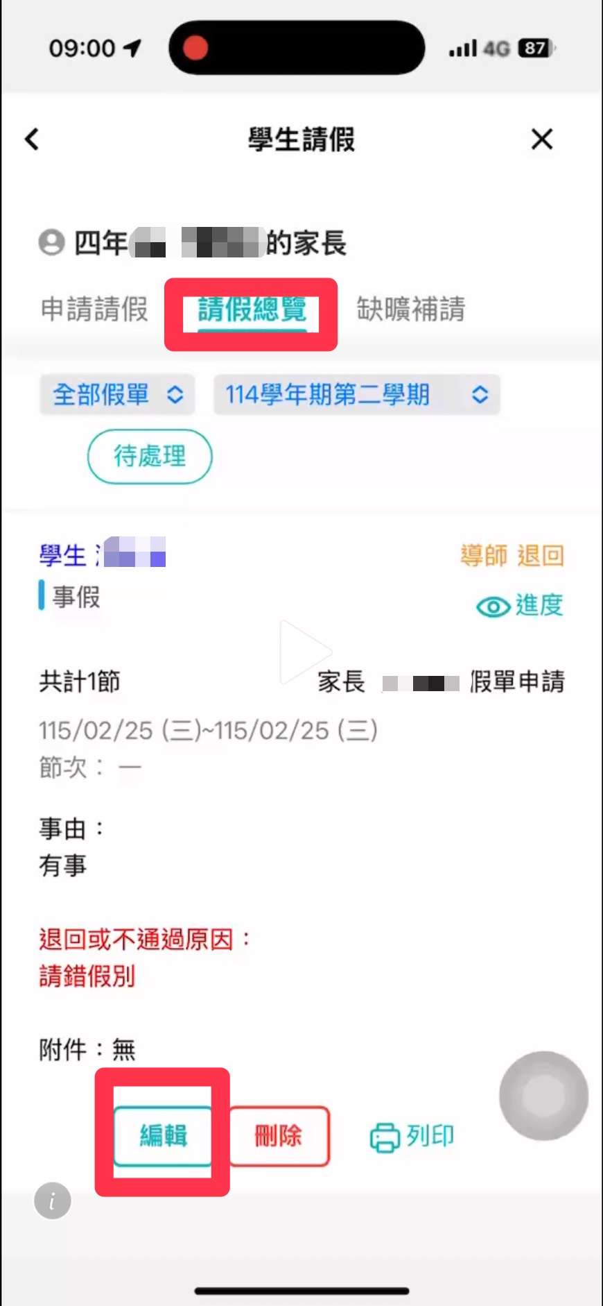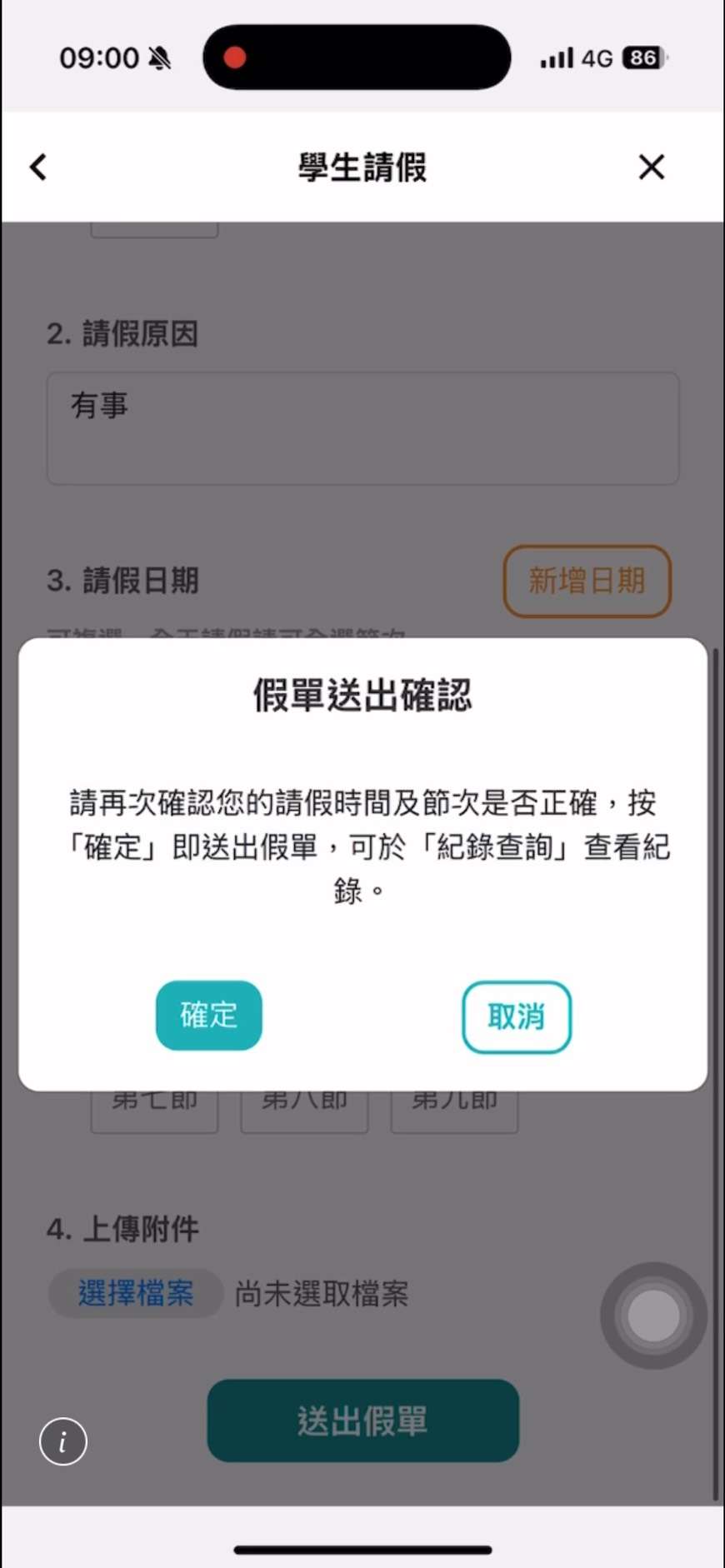 3可以自行修正假單(原因、日期、節次、上傳假單......)