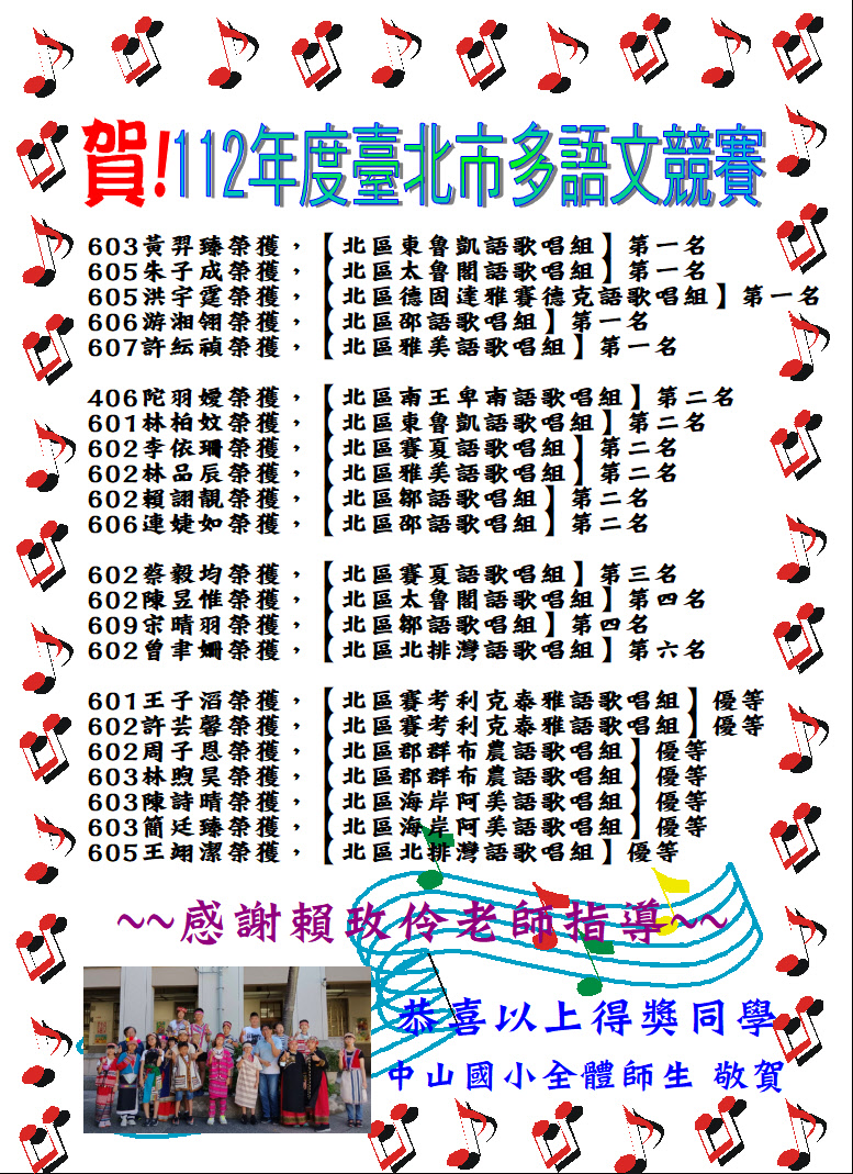 唱出好成績,全體師生與有榮焉!