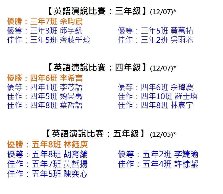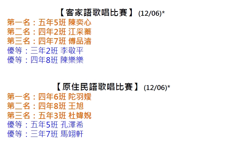 所有參賽選手的表現都值得鼓勵、值得肯定!